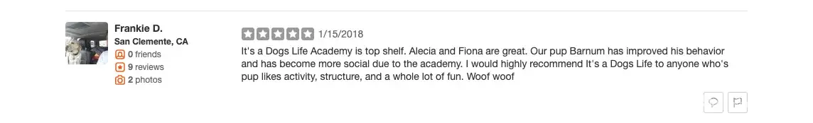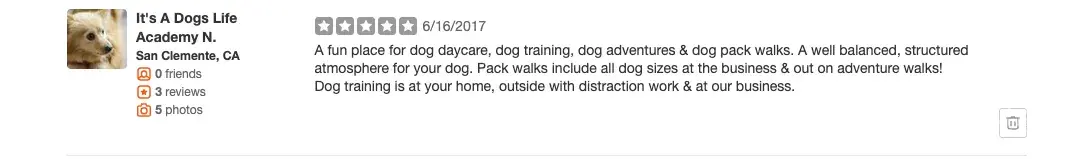 I am the Business owner of It's A Dogs life Academy. I am addressing an issue with YELP as I had a customer contact me a few days ago regarding a 5 star positive rating recommendation post on YELP which was moved to a "Non Recommended" section. After looking into my YELP account I noticed nearly 20 legitimate customers who still attend today were also moved out of the positive rating section. With determination I found a number for YELP & spoke with an employee named Denise