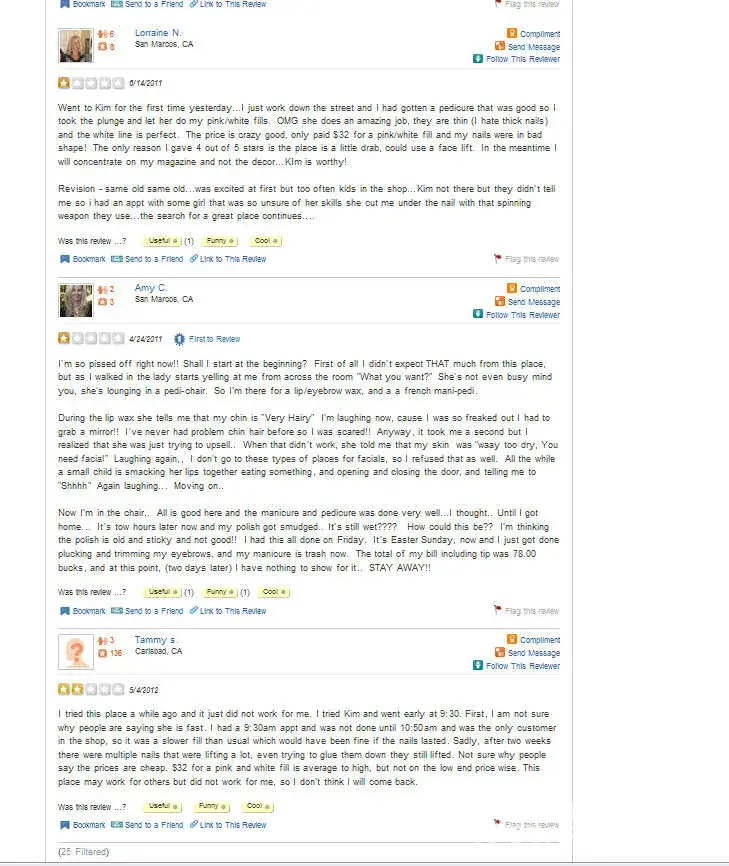 I had a yelp saleman come and try to sell me ads. but I said no and then alll my good reviews were filtered and only bad review would be allowed to be posted. I only have 5 showing reviews and over 25 filtered 5 star reviews. many by people with many reviews. yelp is not fair. if you want a good yelp score buy their ads and you can get it.in the last picture you see the bad reviews and that 25 filtered reviews. yelp is full of bs. if you do not buy ads you get blacklisted