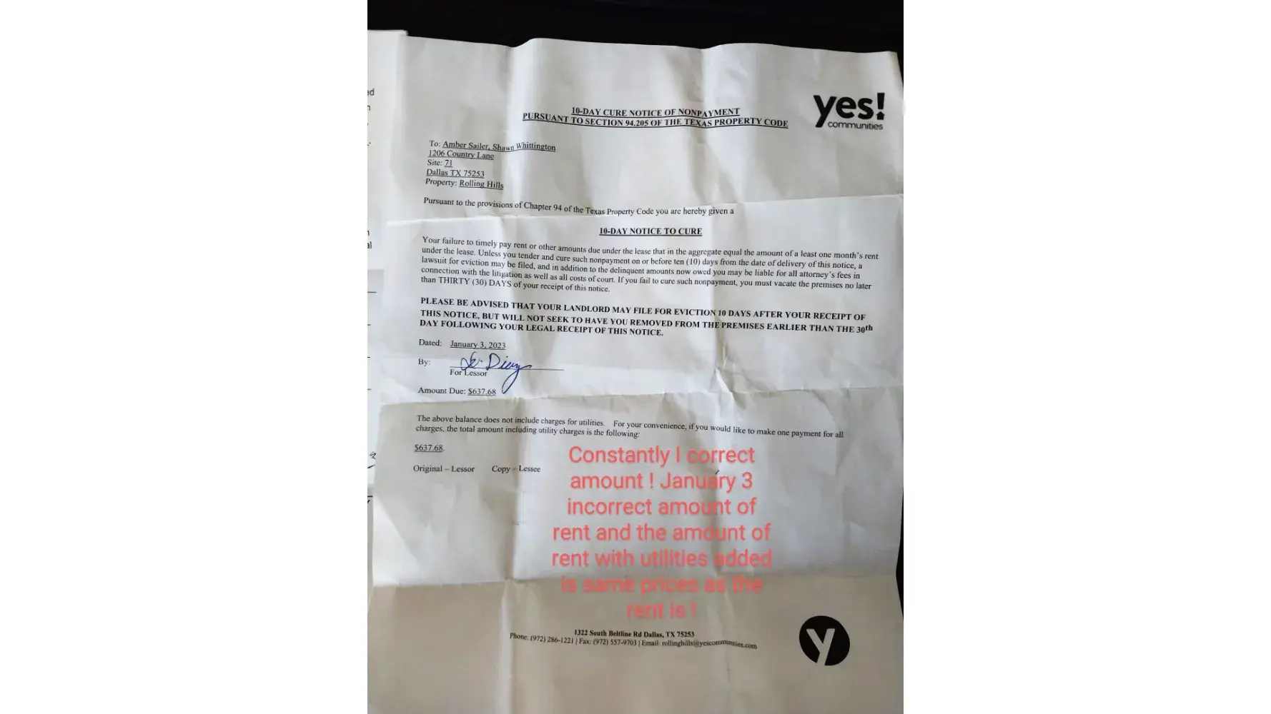 My wife and I have been a resident of yes communities now for about 2 years. Ever since yes took over we have been severely unhappy. When MHPI owned our park and the manager (Bonita) was running it, it was a great place to live. We’ve had many negative issues here since yes took over but the one that really pissed me off was coming home to a letter...