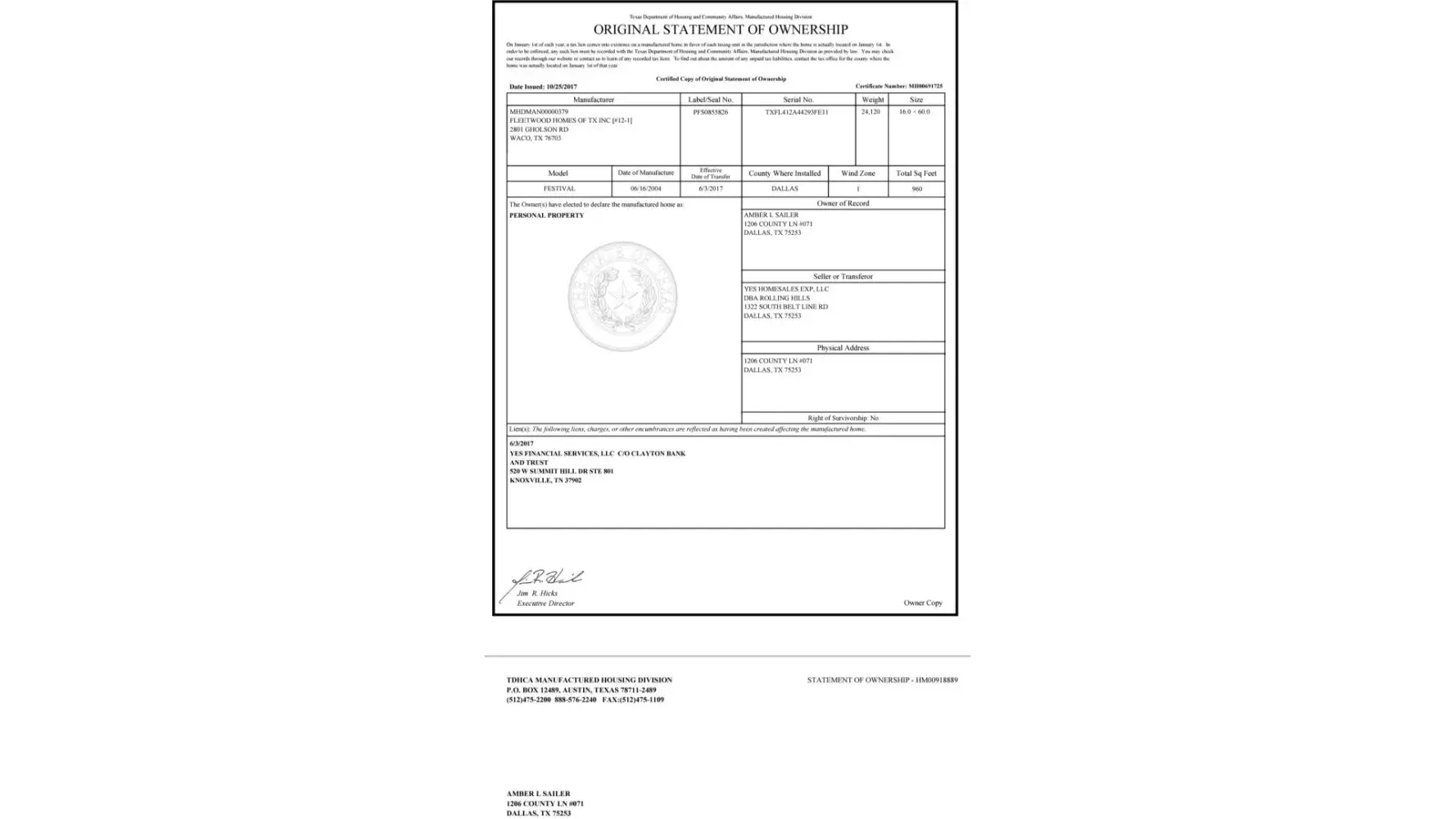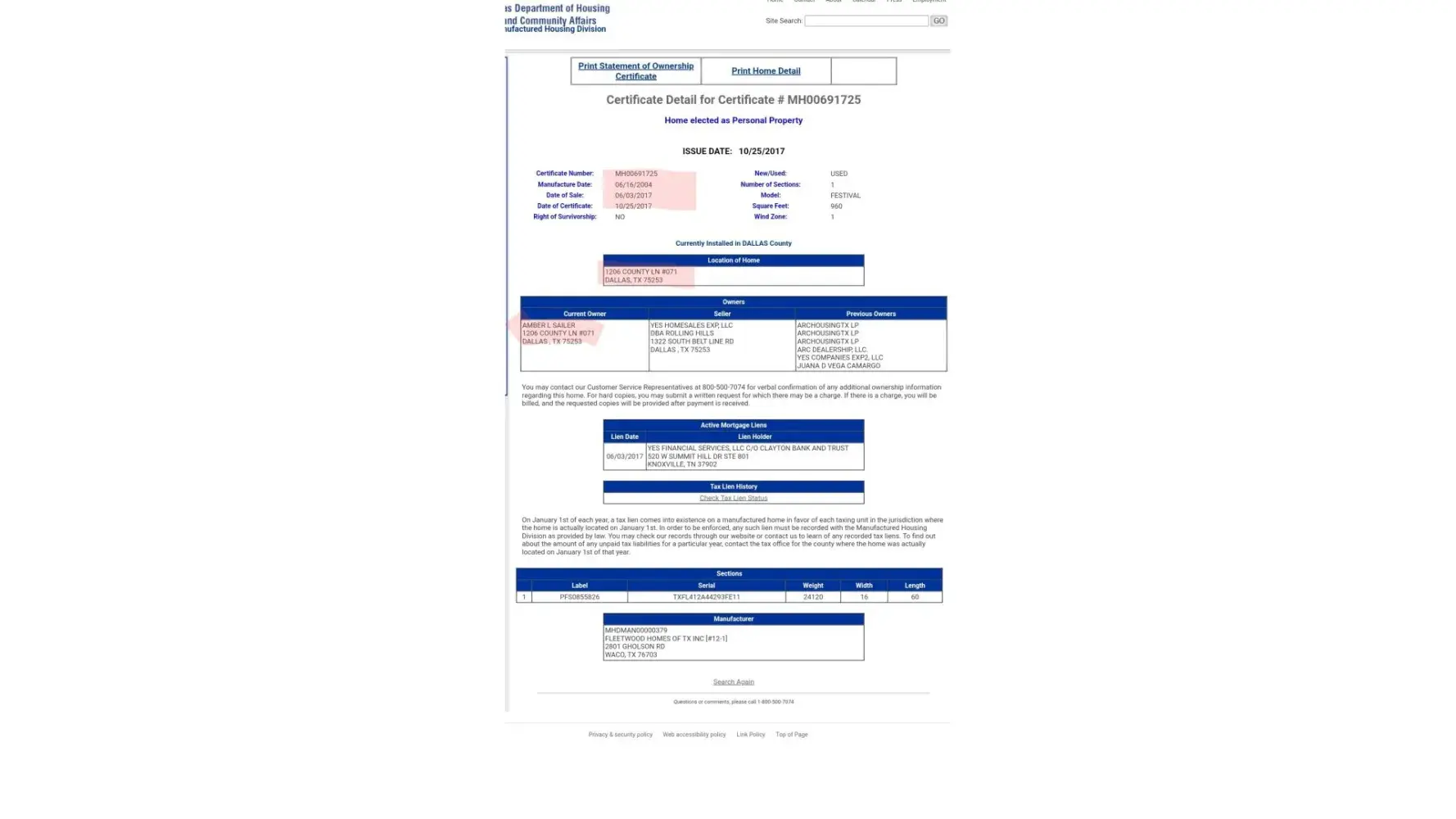 Read full complaintLot rent and mortgage home rental