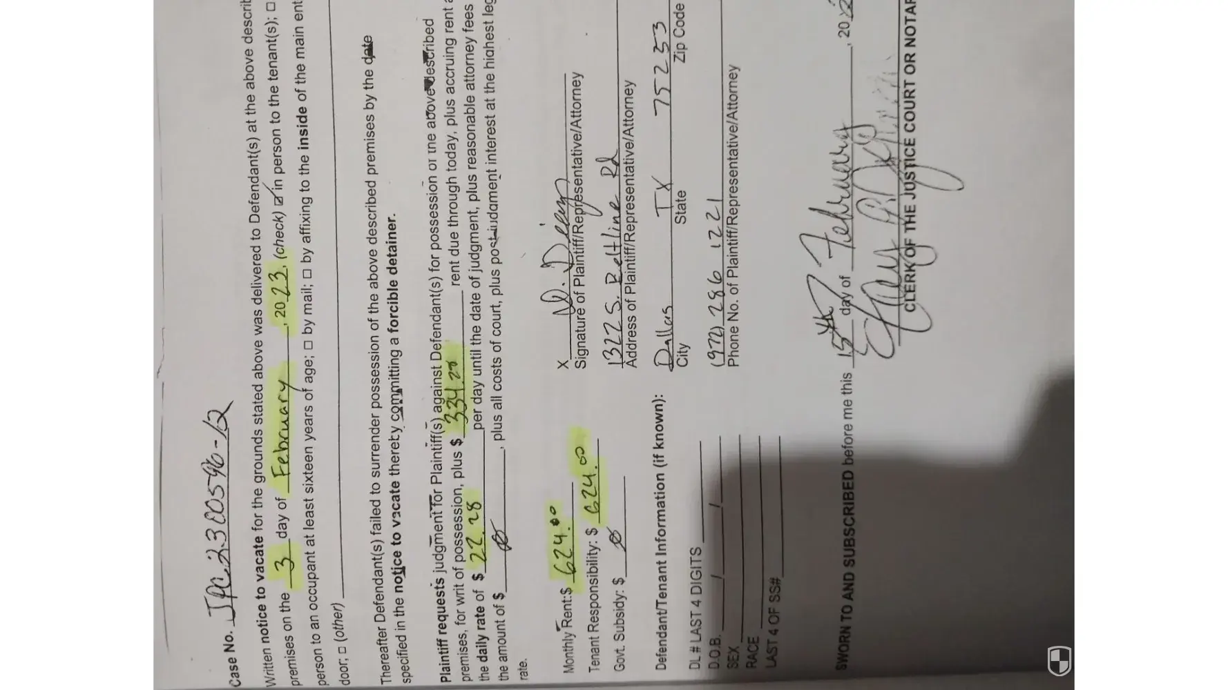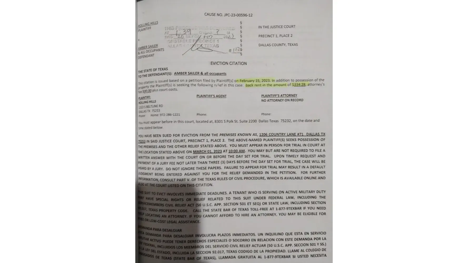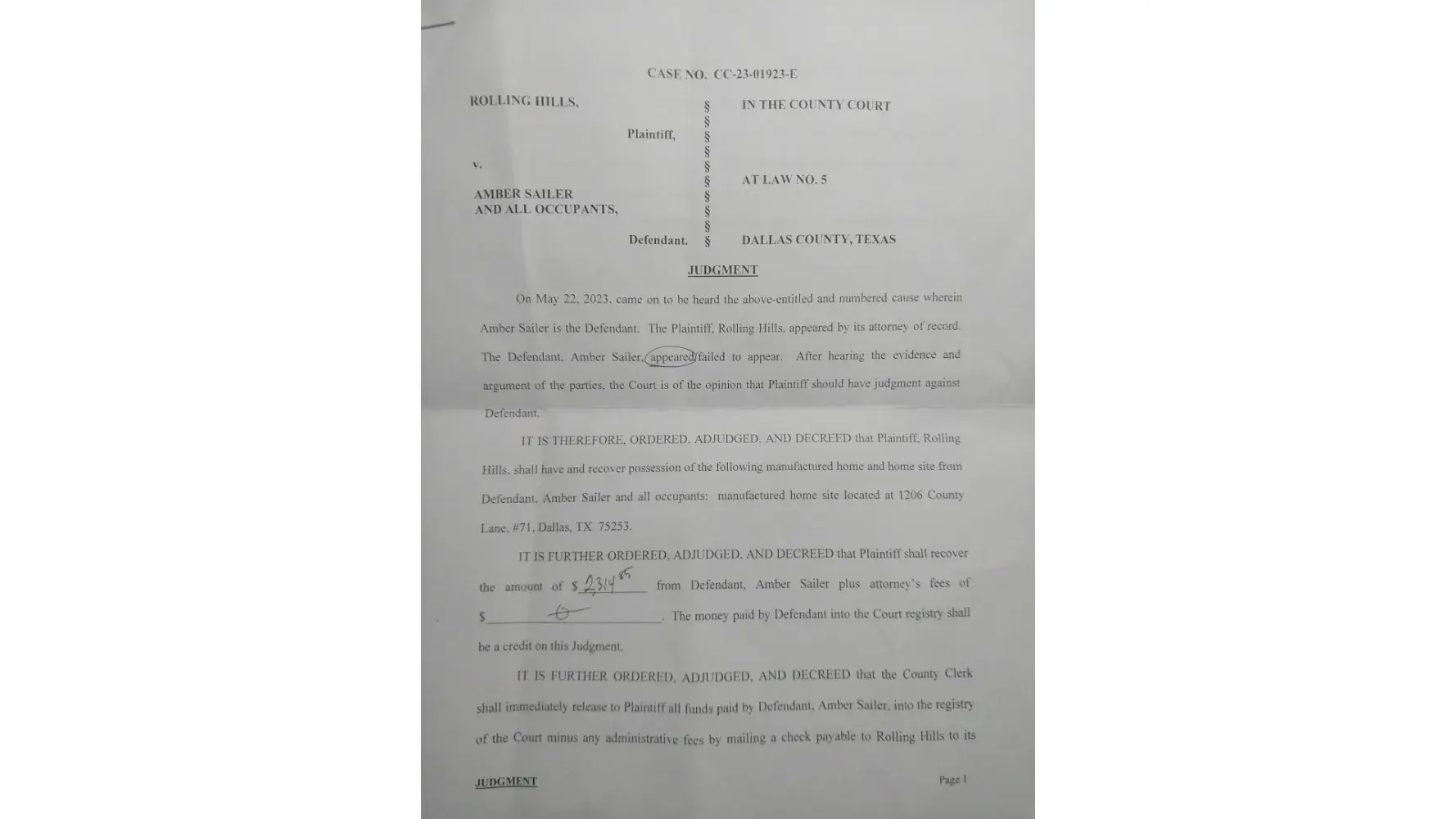 Read full complaintLot rent and mobile home
