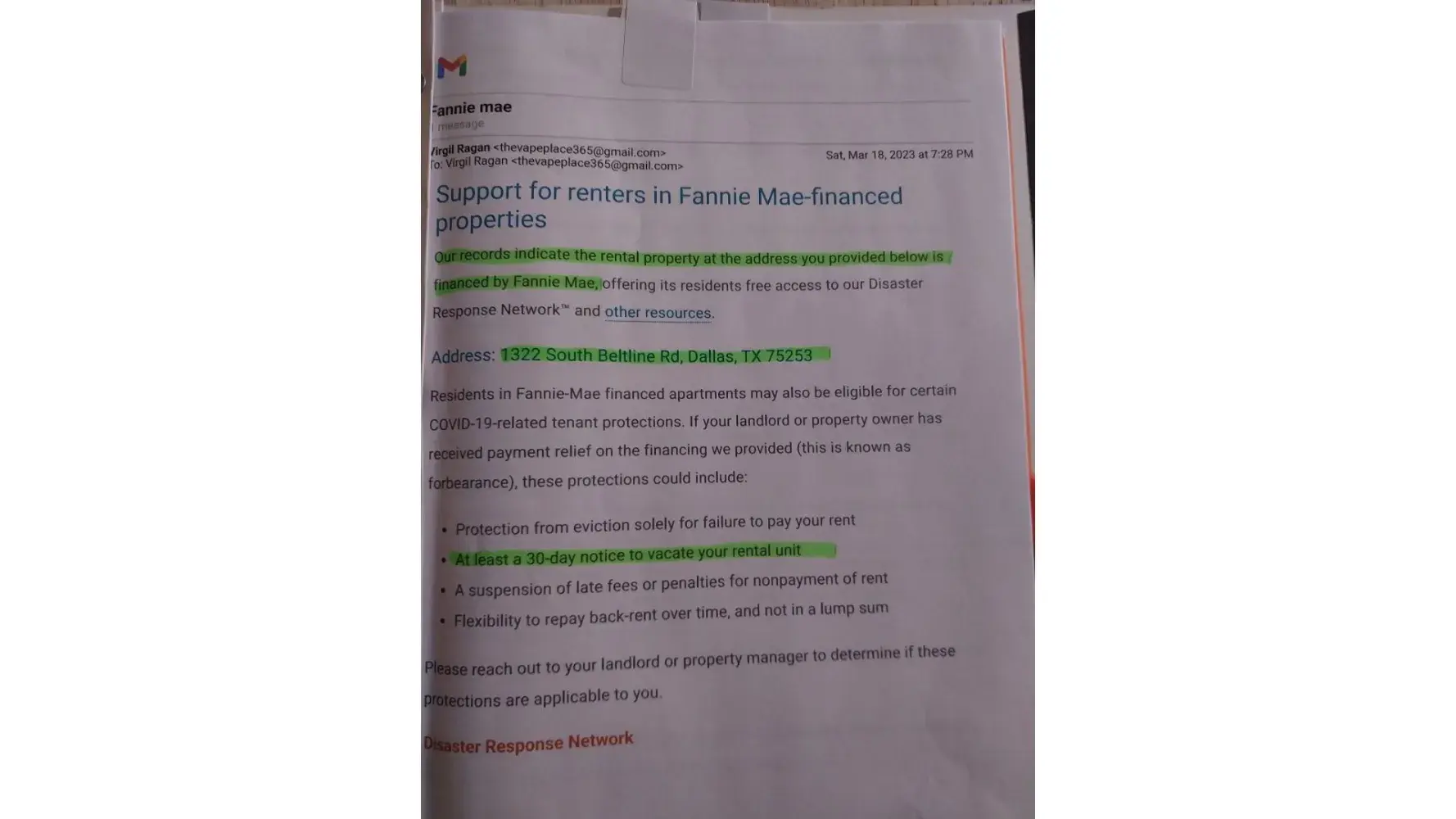 Desired outcome: My deposit and first month's rent back.