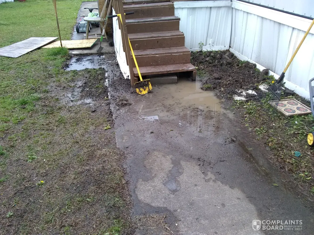 I live in the Royse City community and my front yard is flooded everytime it rains. We have to put plywood down to have a walkway to the porch. This complaint was sent in to the front office over a month ago and nothing has yet to be done. They said they have one maintenance man so it'll be a while until they can get to it but the work order is there. I'm frustrated because the lot rent has went up twice in the two years I've lived here and the one problem I have they put it down like it's not a big deal. We've cleaned the carpet twice in two months because of the amount of mud being tracked in due to stepping in puddles of water to get to the door. Very frustrated.