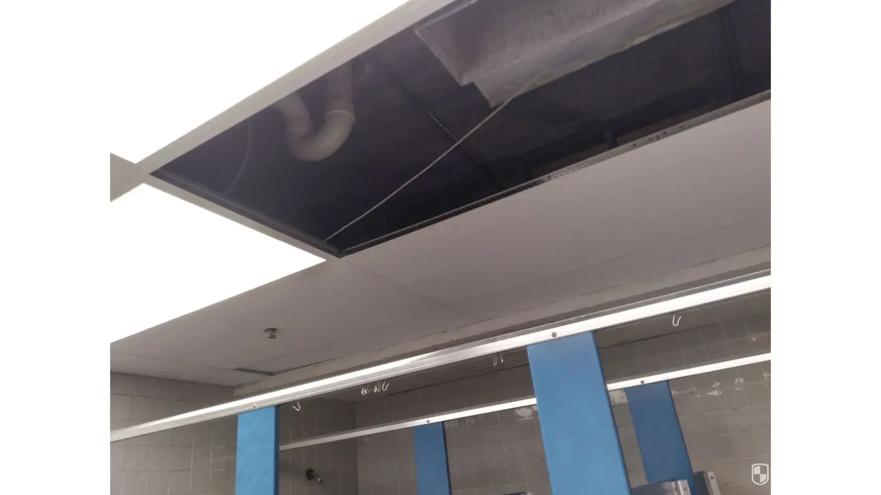 3 showers... 1 dollar tree shower curtain, and 1 handle for the showers. You take the handle off and go shower to shower with the handle turning on the water so you can find which shower has the hot water. Ceiling panels missing. MOLD AND MILDEW all over walls and ceiling as you can see in the pictures. Also have video that was sent to health department. When I asked about the bathroom getting clean 3 months ago I was told to be patient. Fast forward 3 months this is what are YMCA bathrooms and showers look like. 💩