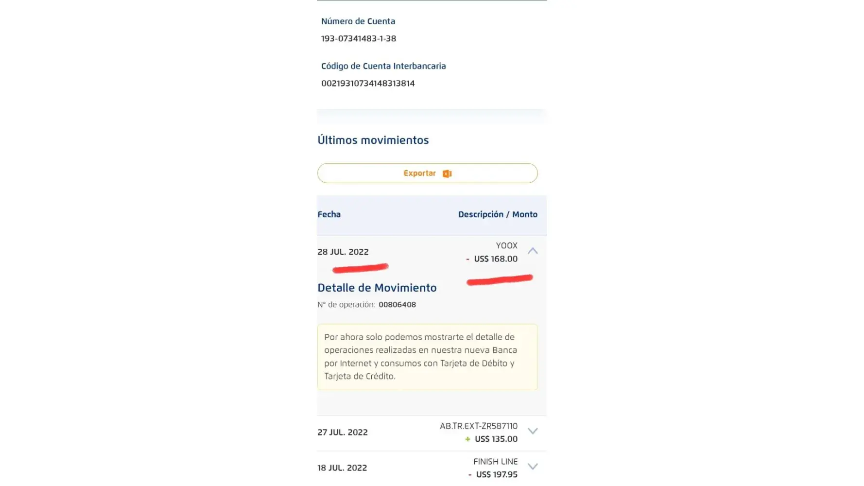 El dia de hoy 28 de jul. de 2022 7:13 a. m. Realizé una compra a la empresa YOOX por medio de la aplicación, el valor exacto de la compra es de 168 dolares, procedà con el pago con mi tarjeta debito Visa y la empresa YOOX hizo el descuento de mi saldo por ese monto. En ese momento luego del pago me llega este mensaje por correo: