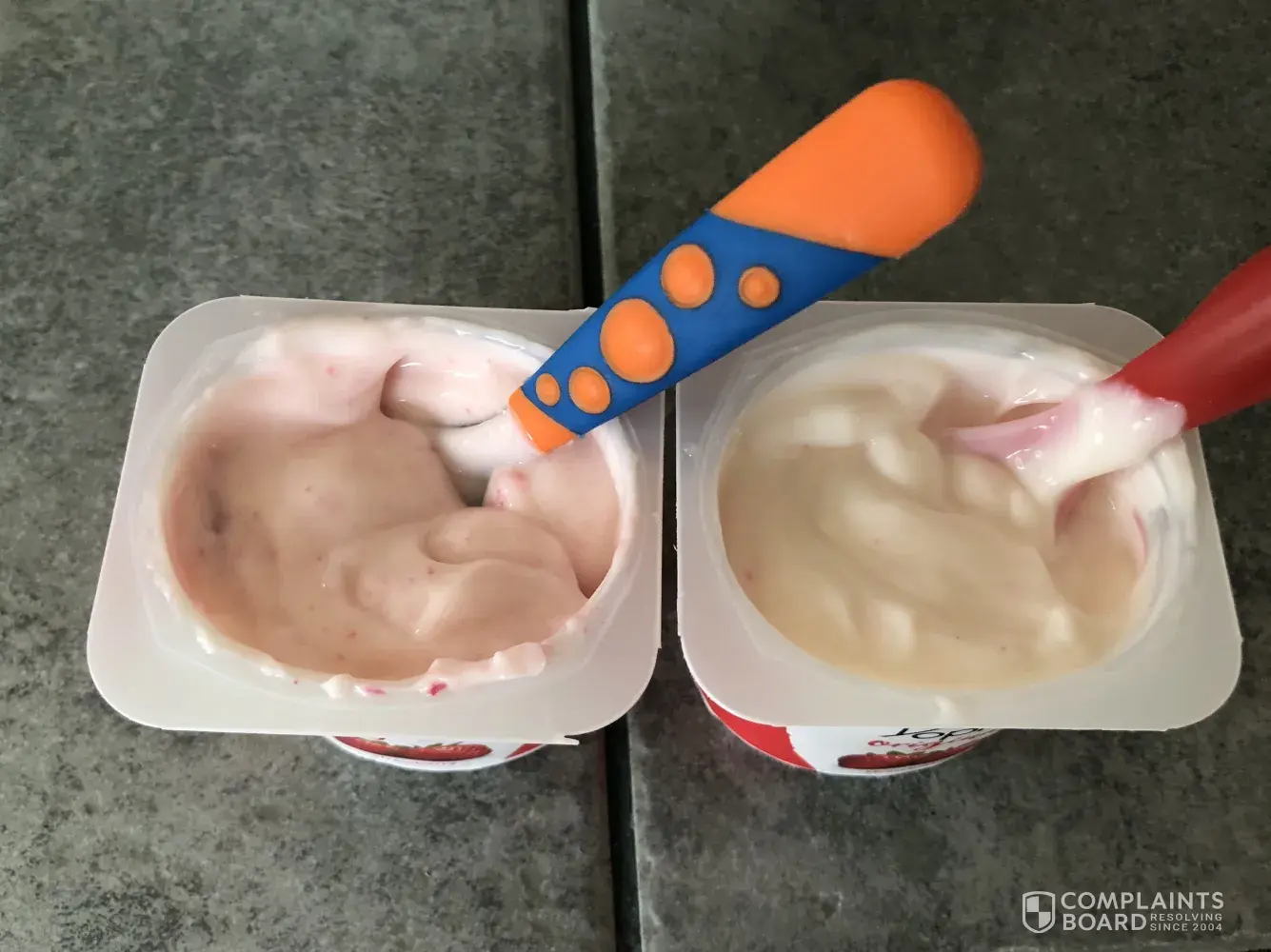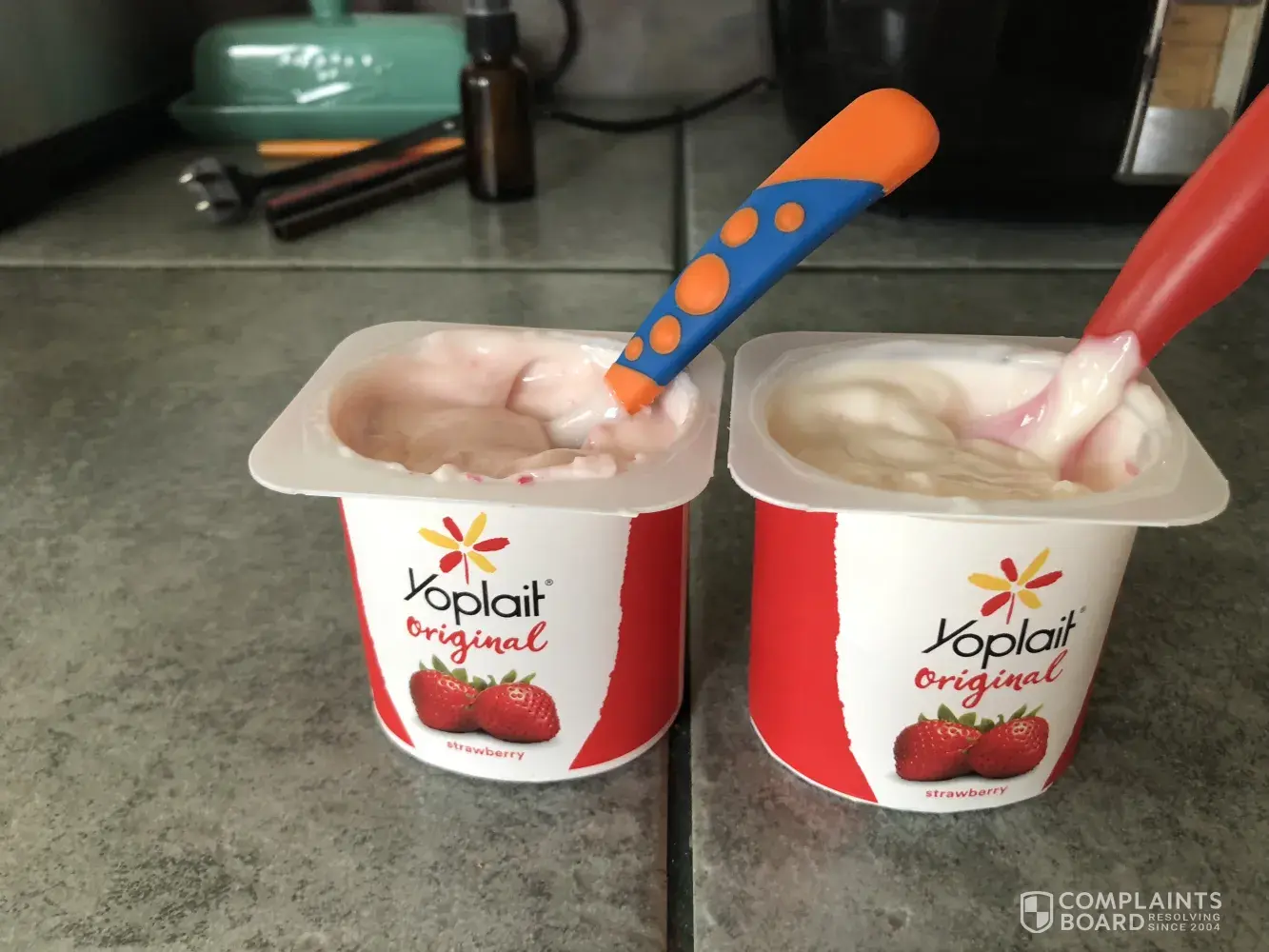 Today, July 9, 2018, I opened two strawberry yogurt cups for my kids, both from the same fridge pack, but one had little to no strawberries in it at all. I have a picture of them side by side too. My son still ate it, just wanted to let you know of this mistake. I purchased them from the JBER commissary in Alaska on Tuesday July 3, 2018. A coupon/voucher to replace would be wonderful. Thank you.