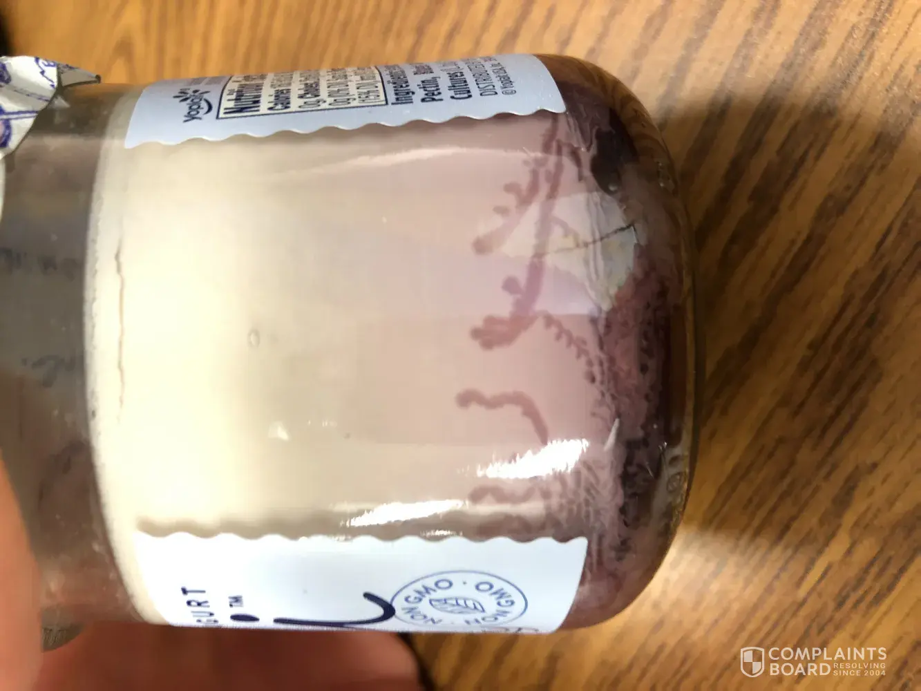 It appears the yogurt in the pictures below has some sort of growth occurring. The sample has not been heat abused on my end? Lot code has been included in the photos. I'm not sure if the fruit layer is leaching into the yogurt or if it is microbial? I have had this type of yogurt before and have not experienced this? Any information is appreciated.