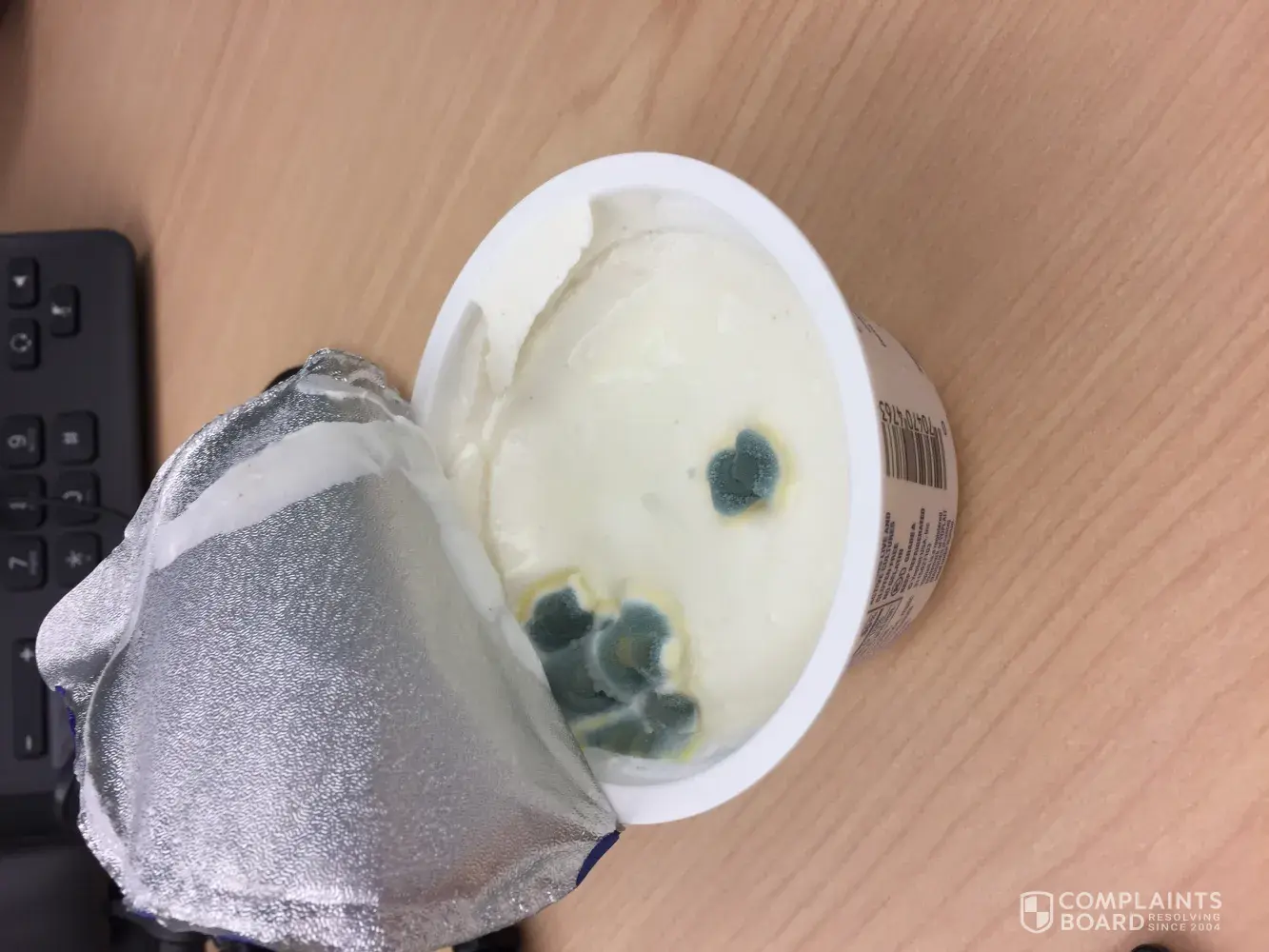 My name is Wendy Herb. I purchased a Greek 100 Apple Pie flavored yogurt from Walmart in Elverson, PA on May 6, 2018. The yogurt had an expiration date of May 29, 2018. I opened the yogurt on Friday May 11, 2018 and the yogurt was full of mold and smelled. I'd like to request a refund of the yogurt since it went bad before it's expiration date. I have attached two pictures of the yogurt. One is of the mold and the other is the expiration date and bar code. I no longer have the Walmart receipt of the yogurt, but it only cost a dollar.