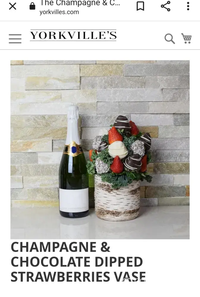 This basket was ordered as a wedding present for my niece. I live in the UK and thought that ordering through a stateside company would ensure it would be delivered on time. Unfortunately it was delivered a day late after emailing Yorkvilles to find out where it was. They did not respond. When the happy couple opened hamper, the chocolate covered strawberries where broken and rotting. What an awful surprise.