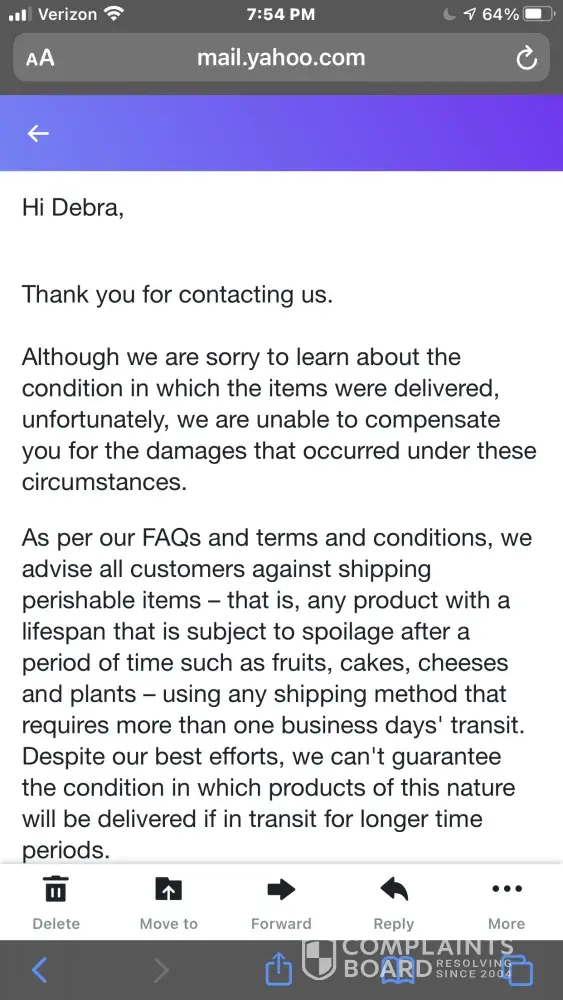My dad ordered a gift basket to celebrate with our family for our personal occasion. He lives overseas so I don't think he saw any reviews here, yelp, trust pilot or so.