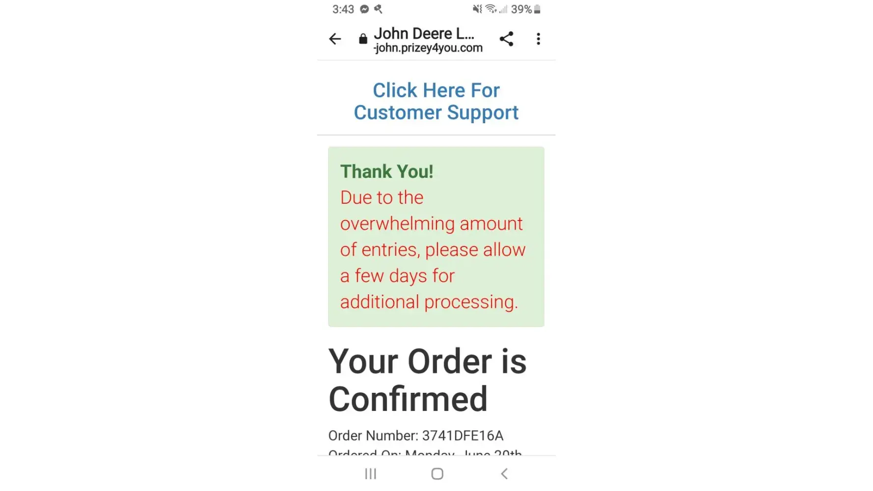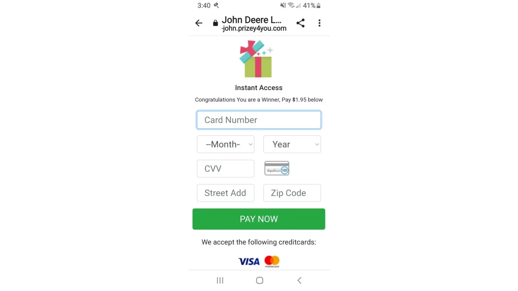 Got a email saying participate in a survey and I would enter a chance to win a John Deere lawnmower. Thankfully used my unlinked Cash App card, which I have frozen and will be deactivating, because I searched after and saw how many people had been scammed by the "Customer Service" phone number for various things. I called and waited on the phone for 15 minutes before it asked me twice to press 1 if I wanted to leave a voice mail. Then it hung up, I did not. About 10 minutes later I decided to check my card again and it declined a payment for $89.95 which I didn't agree to. Thankfully I'm only out $1.95, but it's still hurtful for the people who run personal businesses offering legit rewards for people, like I used to run. Get a life!