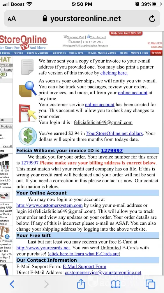 Your Store Online emailscustomerservice@yourstoreonline.net100%Confidence score: 100%Support