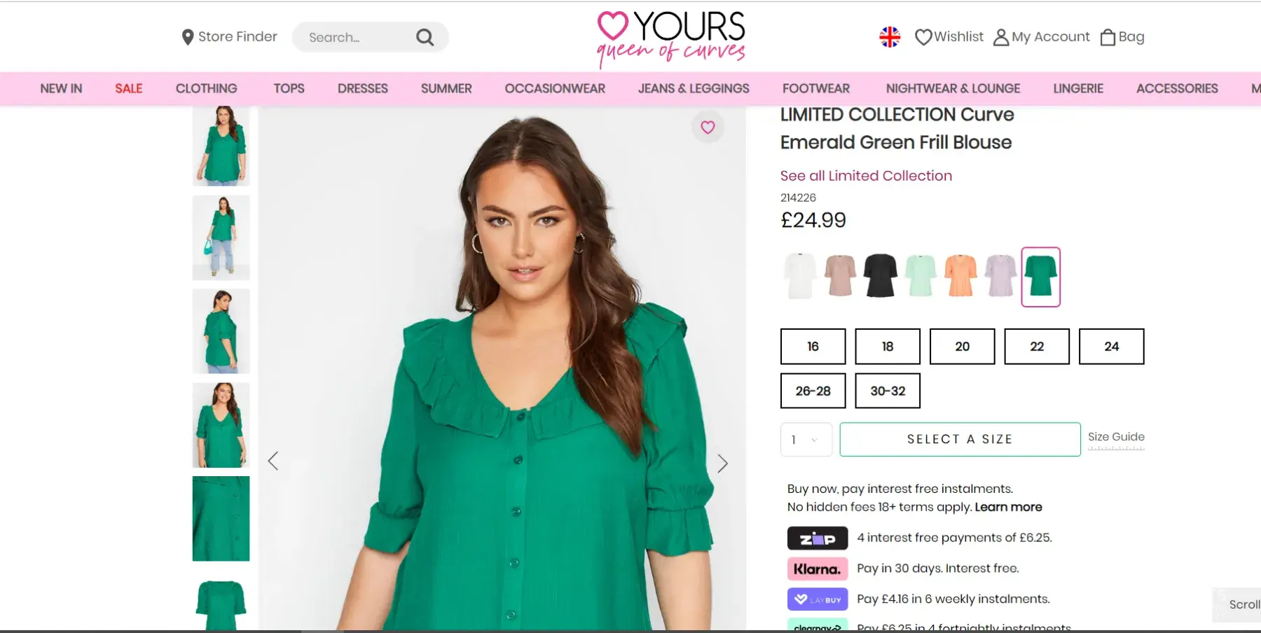 I ordered an Curve Emerald Green Frill Blouse on the above order at £24.99.