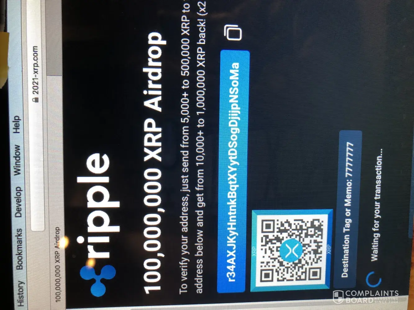I was watching a "live" Ripple broadcast (I supposed) and there was a website attached running a promotion and I interacted after participating in the chat. I sent arp to the site and of course realized later that there were issues that Ripple had with YouTube over their company being used fraudulently to take money from actual Ripple customers.