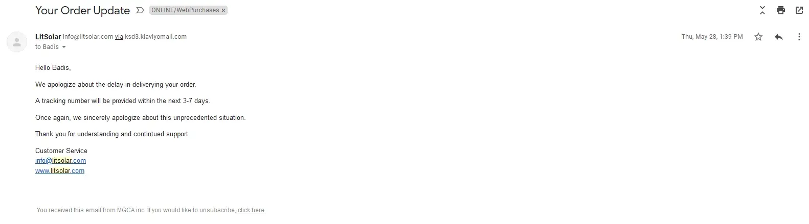 There were adverts for LitSolar power banks on YouTube! Looked like a good product with its own channel. I went on their website, litsolar.com and made an order for 3 units for a total discounted price of $80 for shipping to the UK. This was made on 21 May 2020.