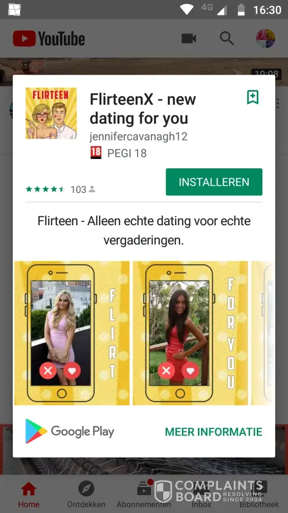 "Dating" ads : Flirteen-X enticing teens to engage in who knows what! Children are watching YouTube but it seems you do not care! Stop placing ads with sexual content! There are plenty of other options! I will keep filing complaints about this as it is unacceptable!