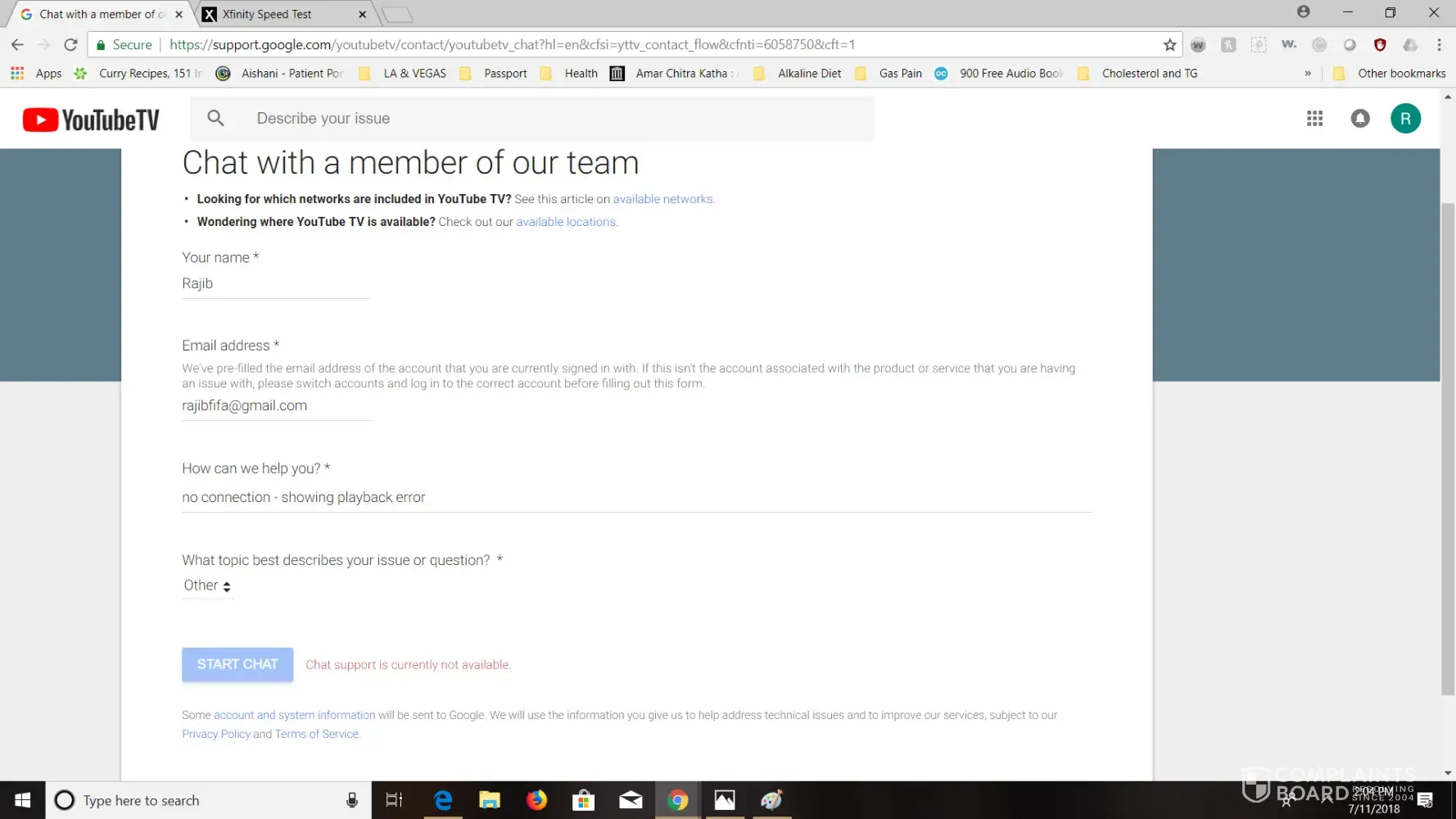 No steps have been taken to resolve my complaint against YouTube.