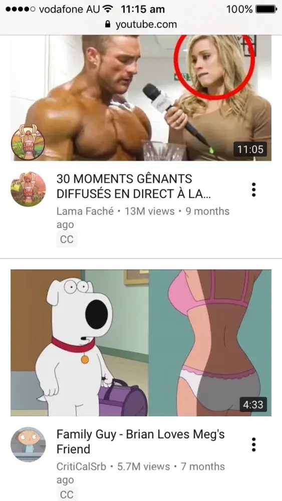When I open youtube website via phone, the contents on the front page is sexually titillating but when I open the website via computer, it is not. Are different staff members moderating the display contents on website via computer and phone? Why the sinister motives? Are you aware of the consequences, or is it precisely why you are doing it? If you have any conscience left in you, please pull yourself together and take the right actions immediately. Thank you.