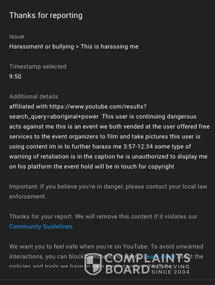 a 90 restricted user who has been harassing myself my business and other victims. during this process which I have now taken legal action along with contacting the federal government and stopbullying.org I have extensive documentation proving gross negligence and the gross delay in response to my claims. 90 restricted user url {https://www.youtube.com/results?search_query=aboriginal+power} the user has taken the liberty to knowingly and willingly violate policies procedures and guidelines advertising and promoting a new channel to subscribers during this 90 restriction {https://www.youtube.com/channel/UC8oWnGC-BV2hRpdWFTL-00w/community} {https://www.youtube.com/results?search_query=the+big+aboriginal+power+news} {https://www.youtube.com/watch?v=gIEeXiDPHQg}