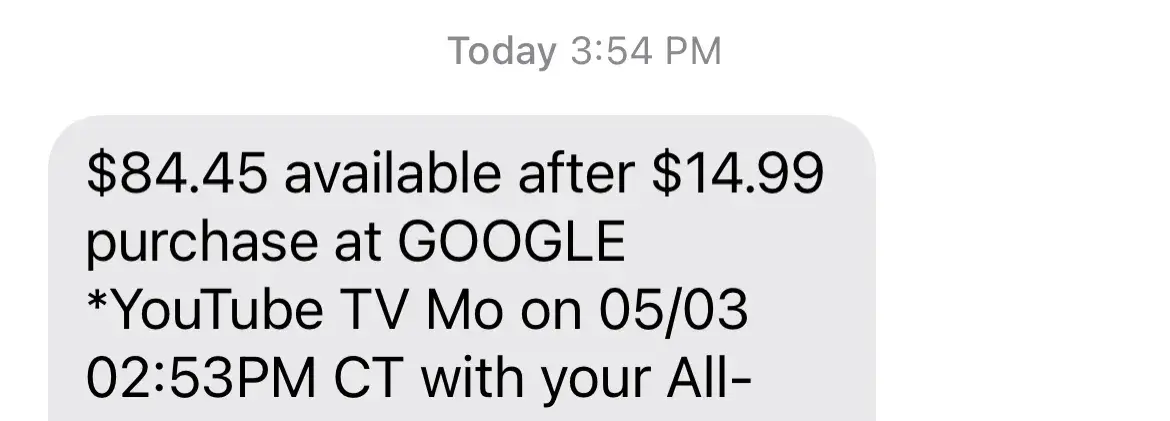 My Debit card showed a $49.99 charge from "Google "YouTube TV" Mountain Viewcaus Tran" Time/Date