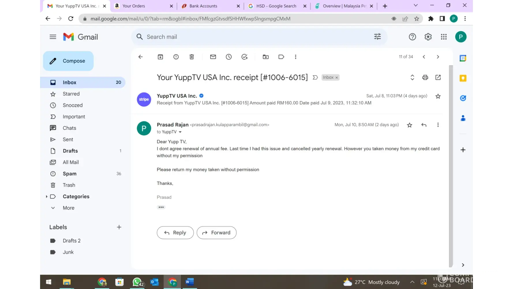 Yupp TV charged annual subscription fee though I have terminated auto renewal