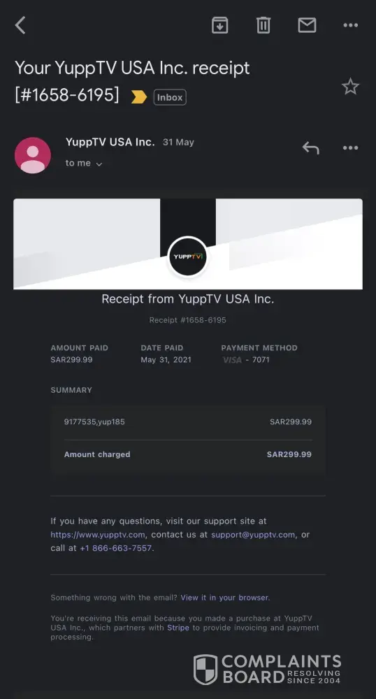 I have attached the screenshot for demand on extra payment being put forward by yupptv support person.