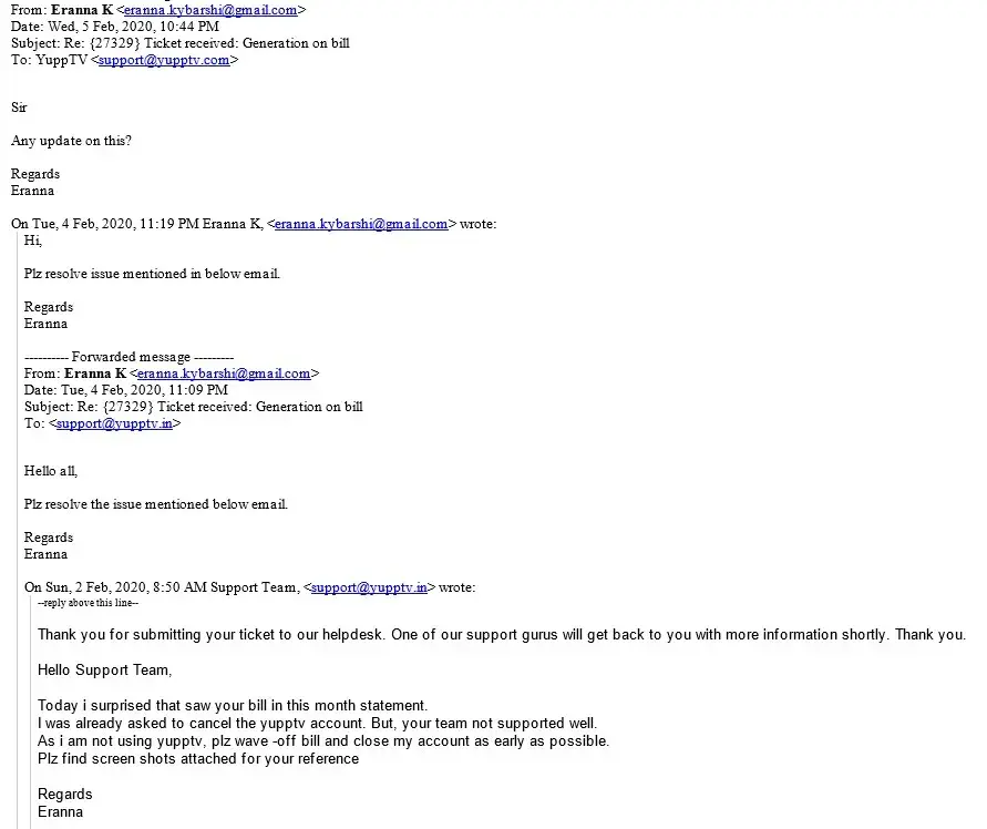 I've been emailing and calling yupptv customer service for weeks an no response.