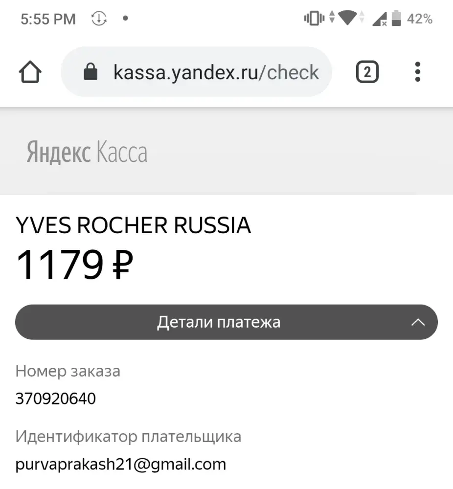I placed an order for 2 anti hairfall serum from Yves rocher worth 1180 rubles they deducted my money from account but never told me order is placed or order number I sent many mails to ask to give my money back or send me product but they never answer.I have screenshot of deducted money and note given to me