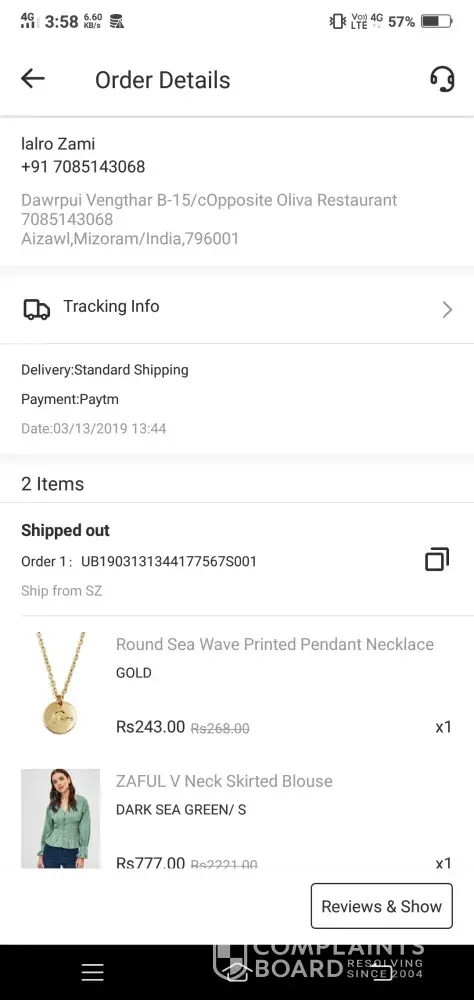 I ordered an off shoulder top costing about 1190 rs from India and its been more than 20 days it never got delivered..the tracking status hasn't been updated since a week ...their customer support is also fake..feels like they r stealing my money and not refunding either... nothing on their app works it's really annoying..I want my money back or give the product...never gonna trust online shopping here onwards kindly look into it