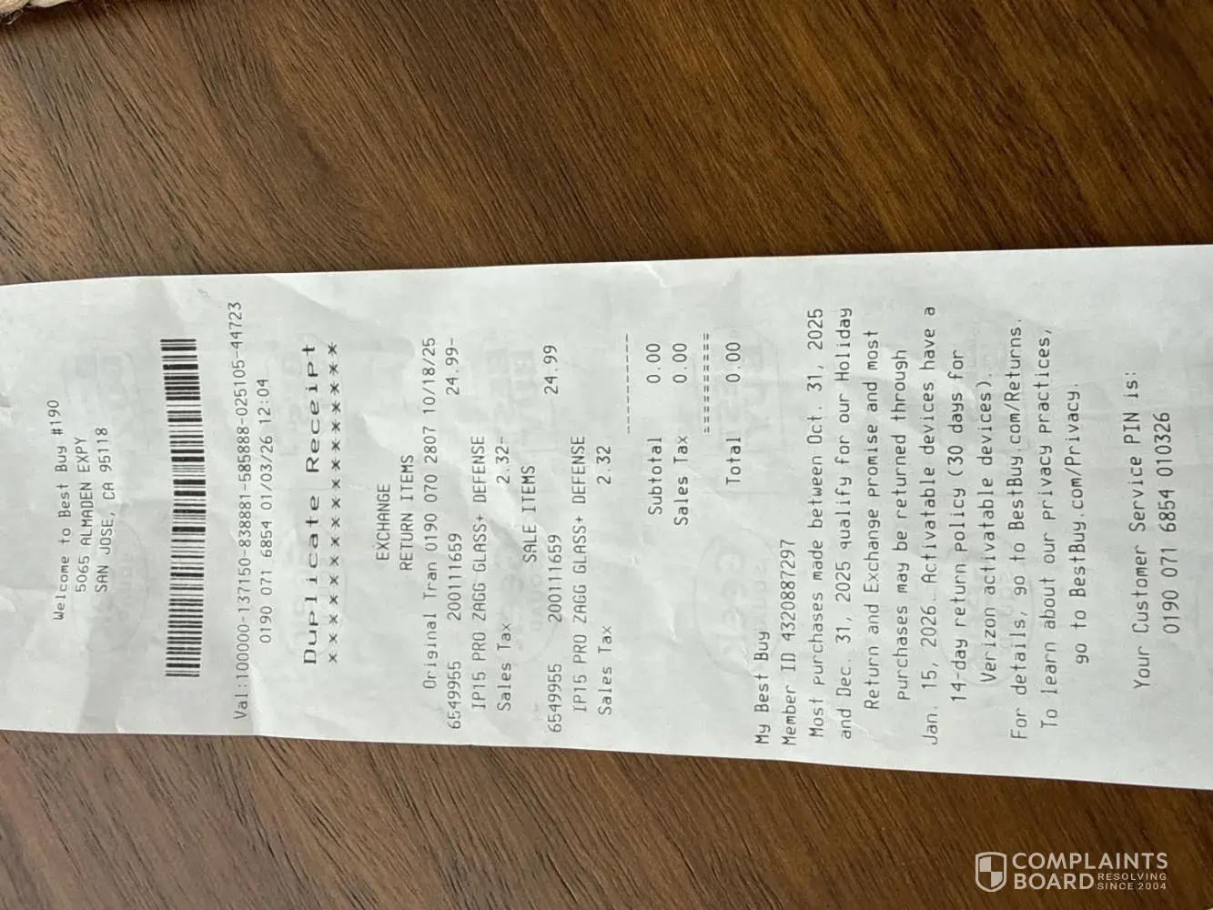 My protector cover shattered and it cut my finger and drew blood so I removed it to avoid more cuts on my finger. I went back to Best Buy and they said they need the old shattered protector in order to put a new one on. I threw the old one away because it was sharp - and I was not told the only way to get a new one was to turn in the old one. I’m attaching my receipt from Best Buy.