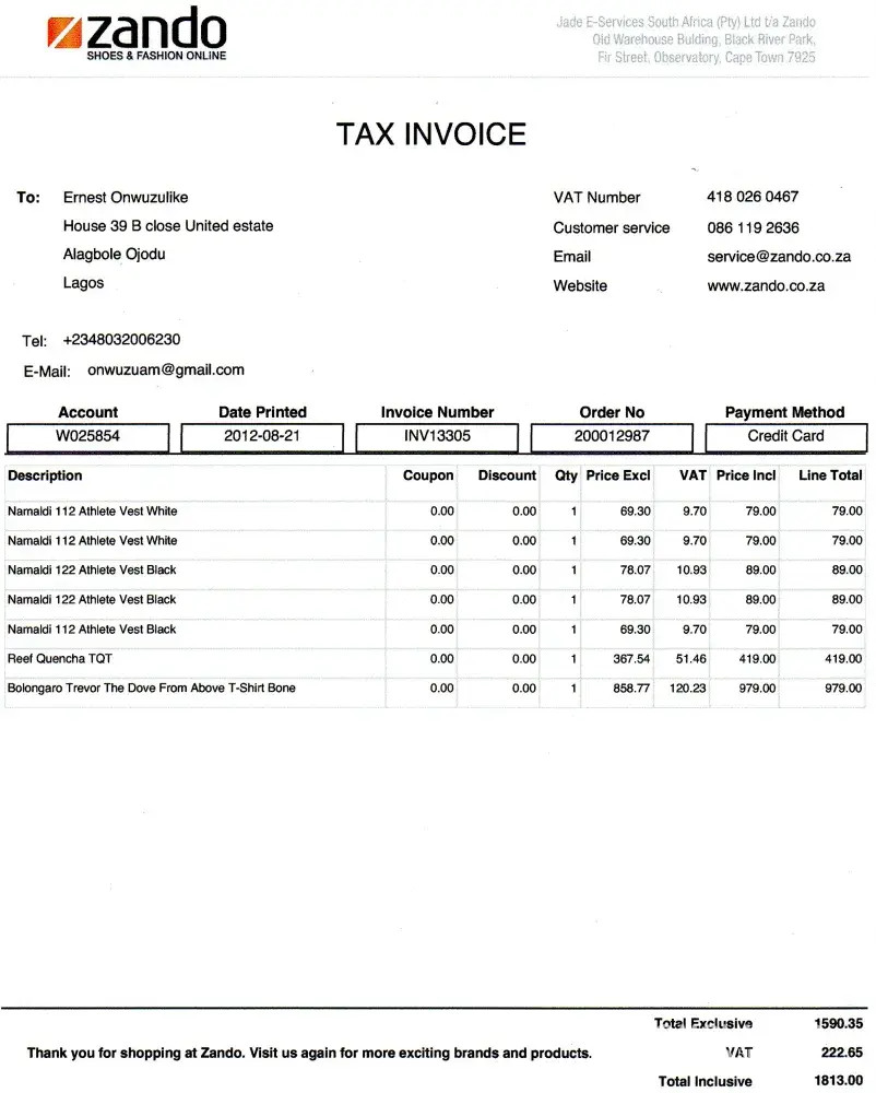 I ordered some items for the first time vide Order# [protected] from Zando site which were reportedly shipped on August 19Th yet the items appear missing. One of their customer staff, Yulin Arendse advised that he/she was investigating the disappearance of my order yet despite several reminders his/her responses have been intermittent, few and far-in-between...