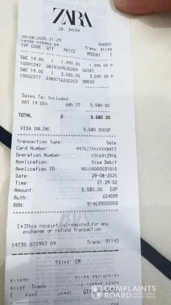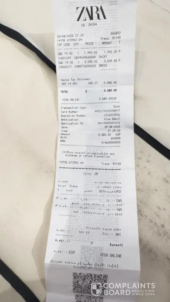 I am writing to formally file a complaint regarding a highly disappointing experience at your Madinaty branch, Cairo, Egypt On [insert date], I purchased a women’s dress as a gift. I specifically requested assistance from the sales representative in selecting the correct size, providing another dress as a reference. The sales associate handed me a...
