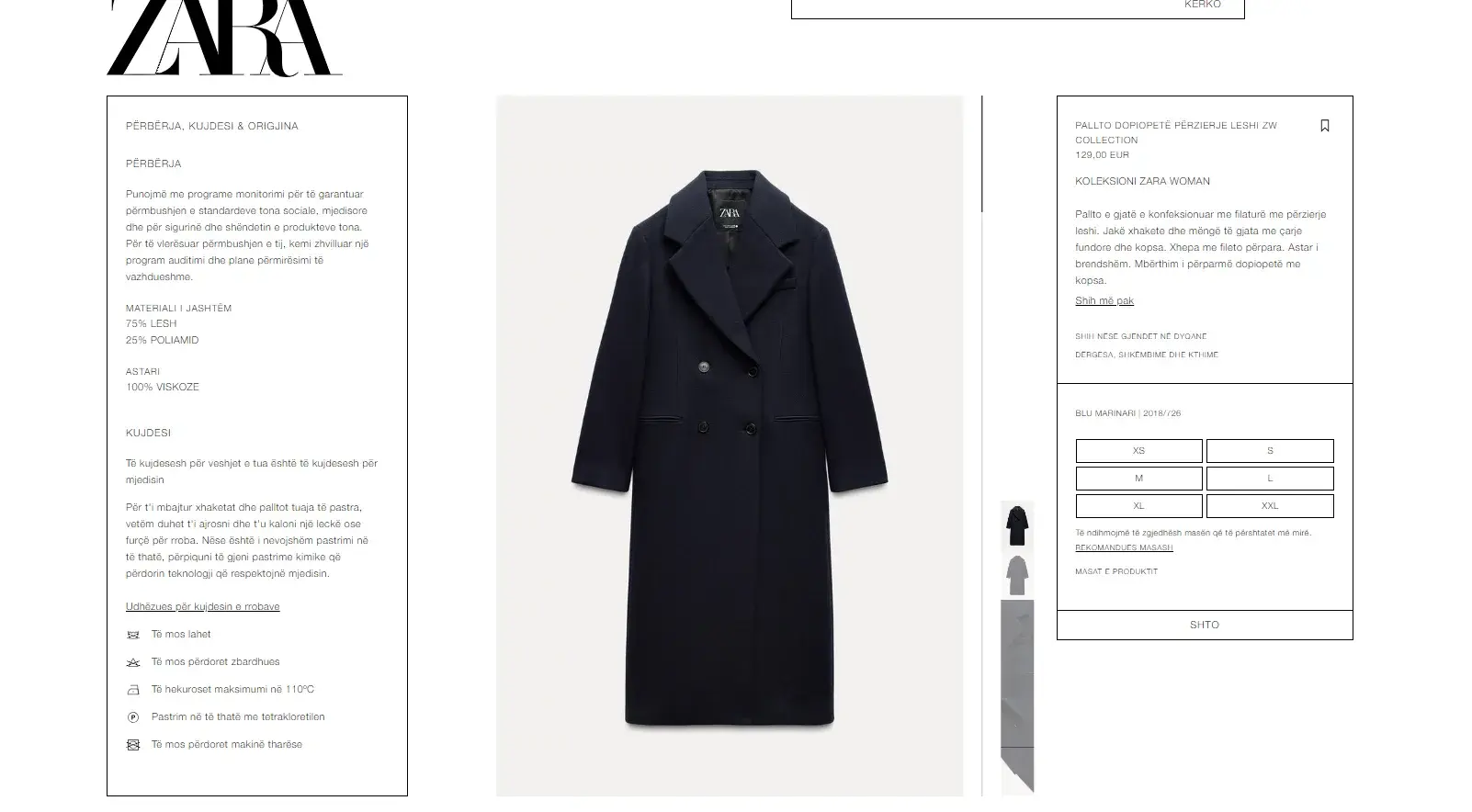 on 23d of November, I bought a coat at Zara Albania at Tirana East gate Shopping Mall for 18,000 ALL (approximately 180 euro). I just saw on Kosovo's Zara Website that the same coat was offered for 129 eur. The price difference is nonsense considering that I am buying from the same trademark and exactly the same product.
