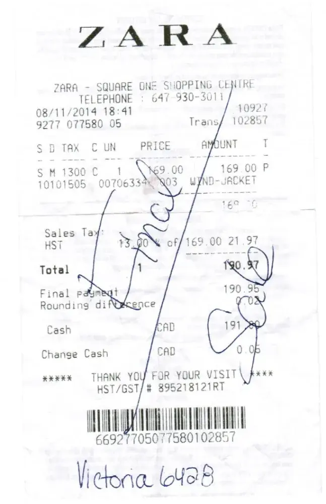 On the 8th of November, 2014, I bought a wool jacket from Zara in Square One Shopping Mall (Mississauga, Ontario). Today, I took the jacket to the same store to exchange it for another one that I liked. While waiting at the cashier, I was trying on the jacket that I bought before to make a final decision, and the employee at the cashier saw the jacket on me and refused to exchange it, claiming that the jacket was used. I tried to explain to her that I was just trying it on to make a final decision, but he didn’t believe and refused to exchange it. I asked her to call the supervisor to explain to her what happened. When the supervisor came, she believed the employee’s side of the story, but not mine, and refused to exchange or even return the jacket. After spending a few minutes explaining to the supervisor what happened, she asked to see my receipt, and then without my permission wrote on it “Final Sale”, and told me that I will not be able to return it to any store.