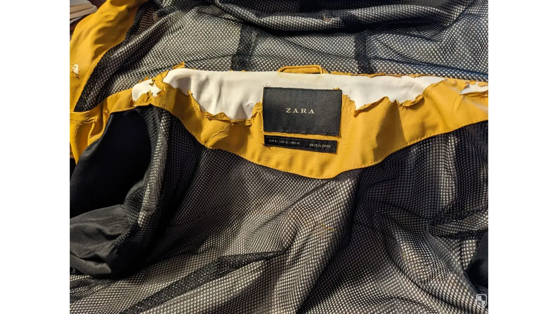 Last week I packed for a trip to the USA and decided to take the jacket but much to my surprise it seems like the Yellow Polyurethane is separating from the Poliester.