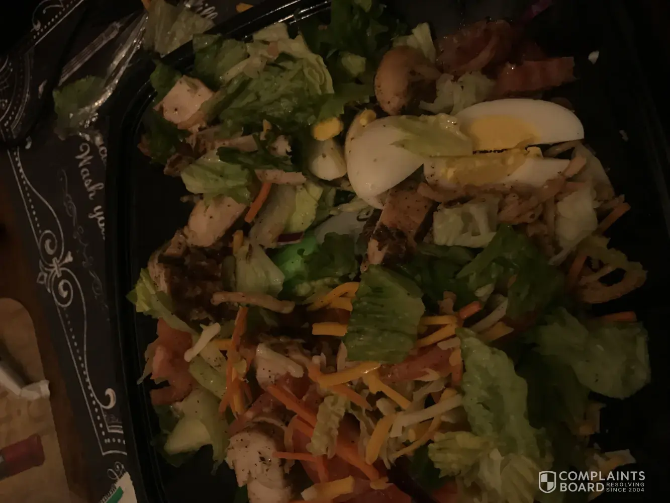 On APRIL 4 @9:30 I called in a takeout order. The order was for a Cobb Salad with Ranch, Order of fried mushrooms, and mild chicken wings with fries. Order came to $21.06 and I did not get anything I ordered. I made the Guy aware of it and he told me to get back in line and he would reimburse me but the line was full and it was getting Late and the Lobby was closed.