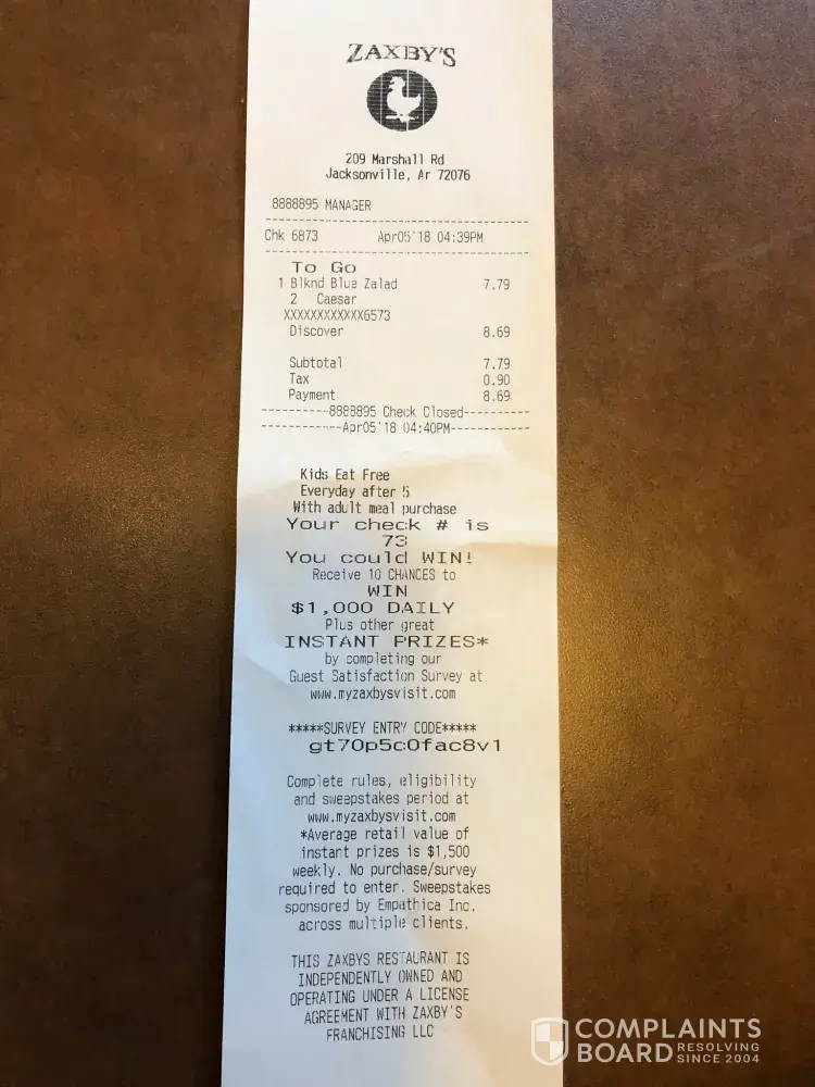 Zaxby's earns a 1.2-star rating from 7 reviews and 397 complaints, showing that the majority of chicken aficionados are dissatisfied with their meals.