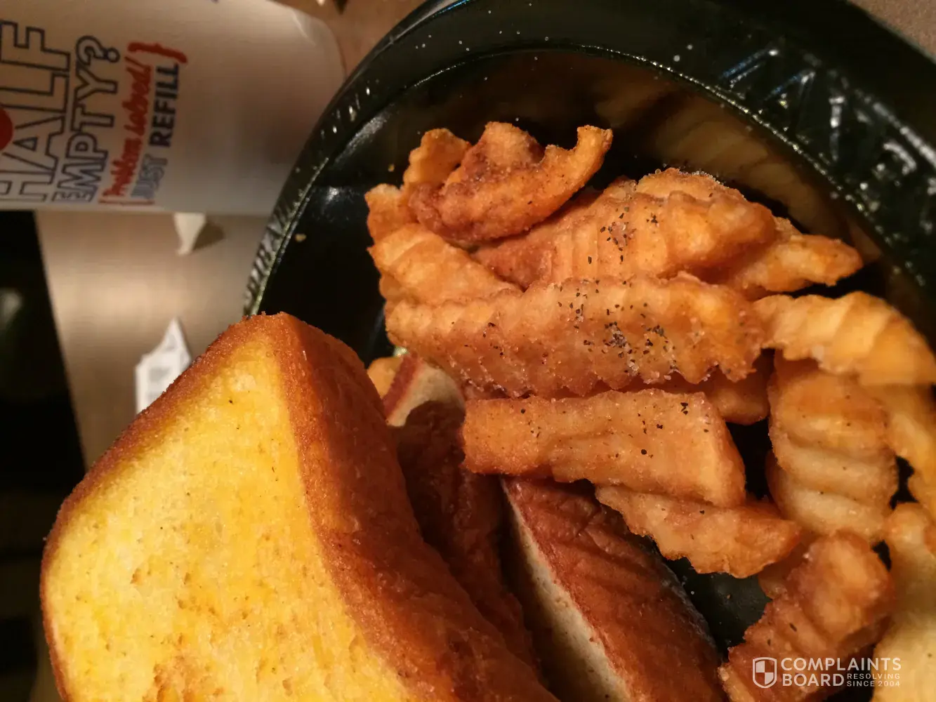 The chicken was salty and fries were over season and saggy I have never experienced such an awful service in my life the employees are really ignorant and rude also the manager doesn't seem to care, first experience at zaxbys was good at a different location but at this one never again in my life will I go there