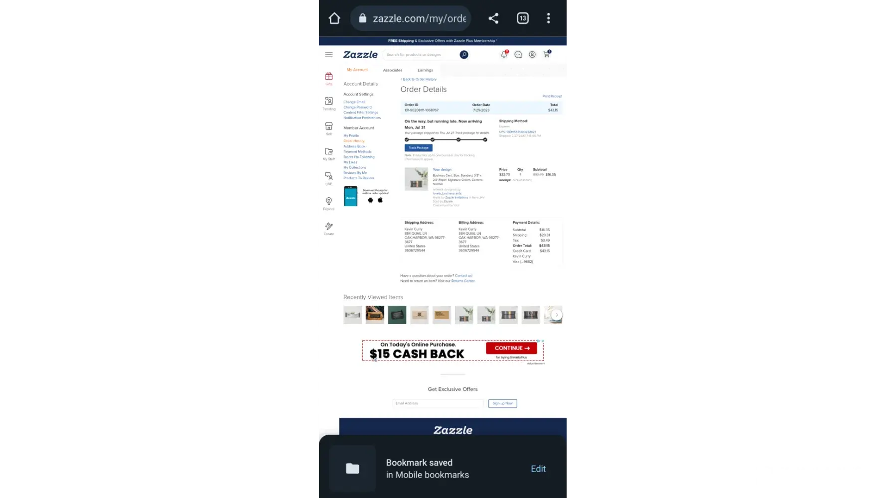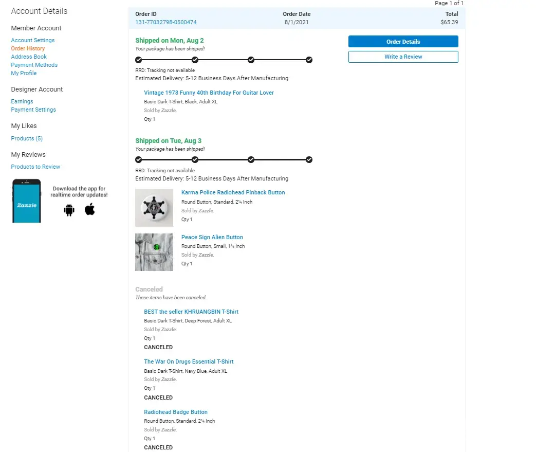 I ordered a couple of t-shirts and badges off Zazzle website. The website accepted the purchase and deducted the money from my credit card.