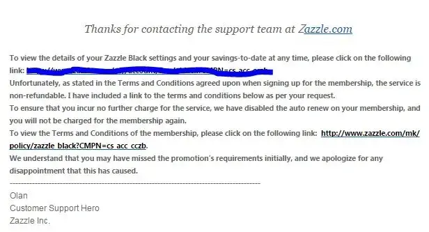 My first order with Zazzle had a date next to the order to encourage you to purchase Zazzle Black and get the item quickly. I purchased Zazzle Black and then was told it could not be used for that order. I then asked to cancel my membership. I believe it is a third party that provides this membership. They told me (the day after I purchased it) that it cannot be cancelled until the year was done. This type of membership means they are unable to keep customers without locking them in - poor customer service. I encourage you to read the small print since they are able to make changes to the membership at anytime. I am disappointed in their choice to not refund me the money and discourage anyone from using Zazzle and Zazzle Black.