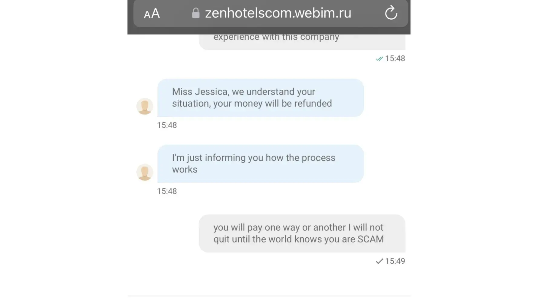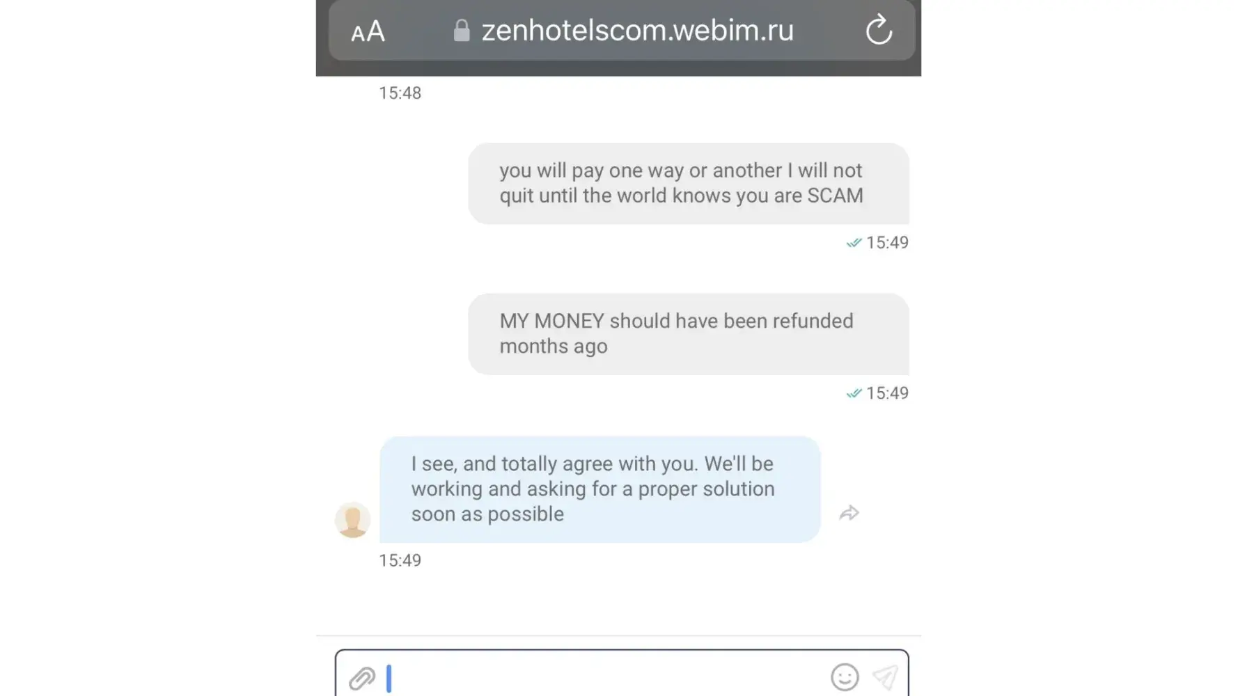 In conclusion, based on my experience, I would never deal with Zenhotels again. Their lack of customer service and communication has left me with a sour taste in my mouth. It's essential to be cautious and vigilant when booking a hotel through any third-party website, as these scenarios can sometimes be disappointing.