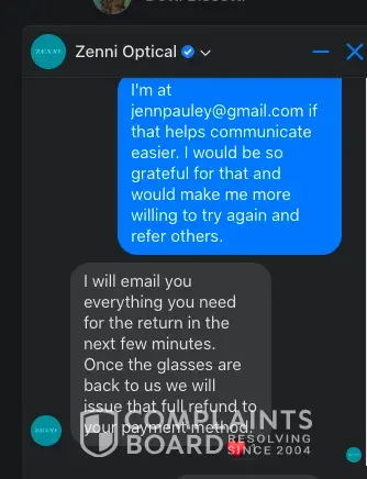 Here's a taste of the review I'm posting online: Zenni's customer service is a disaster. They sent me the wrong glasses and refused to fix their mistake. Trying to talk to their staff is like going down a rabbit hole of insanity. They don't honor their return policy, and it's like they're intentionally creating chaos. I've lost time and money dealing with them, and it's been a dark experience. My advice? Stay away from Zenni. Don't get caught in their mess. You've been warned.