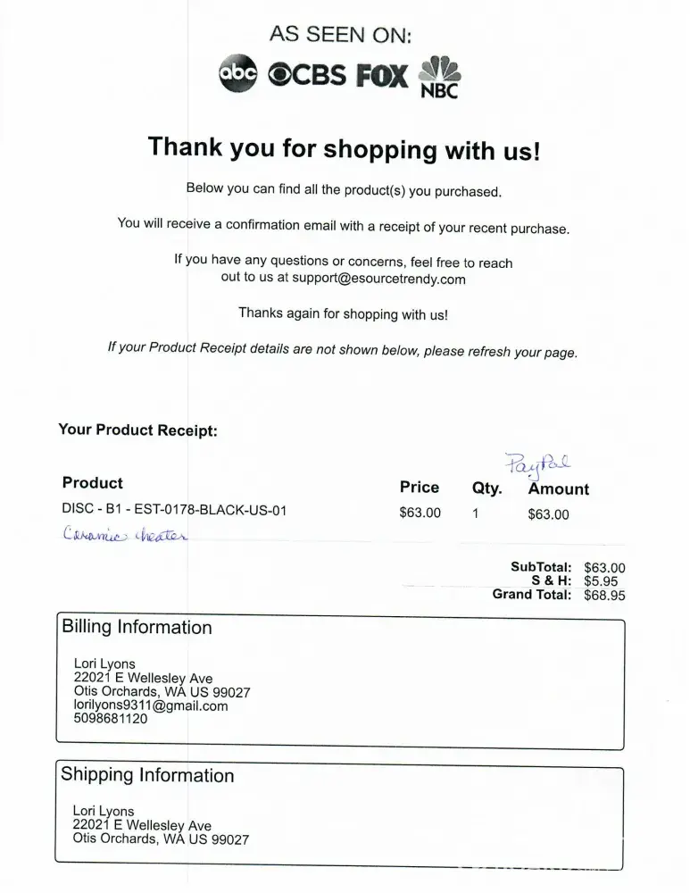 Ordered a 'ceramic heater' back in December... B1 - EST-0178-BLACK-US-01 $75.00 tried to track with addressed provided by ZestAds...took me to nowhere land ... tried to email company with address provided...email returned as 'undeliverable'...