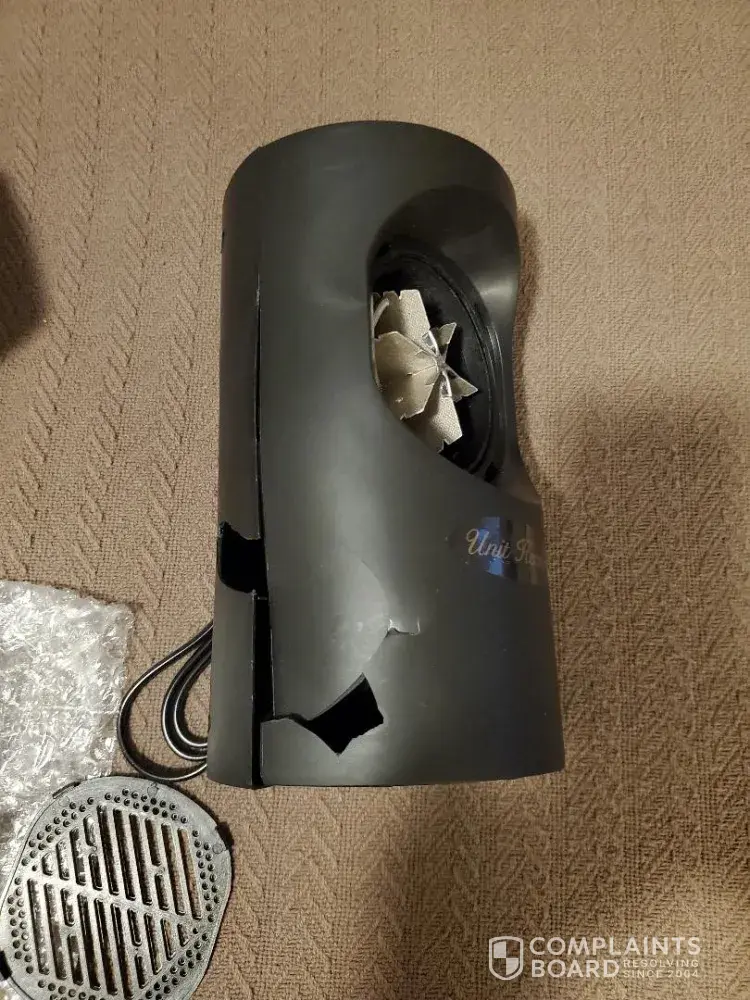 finally received 'warm air machine' from company yesterday but box damaged and heater broken in several pieces...definitely not the product pictured in ads and no ceramic to be found on heater at all...