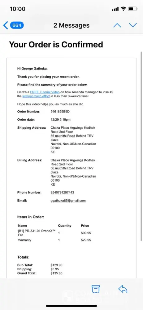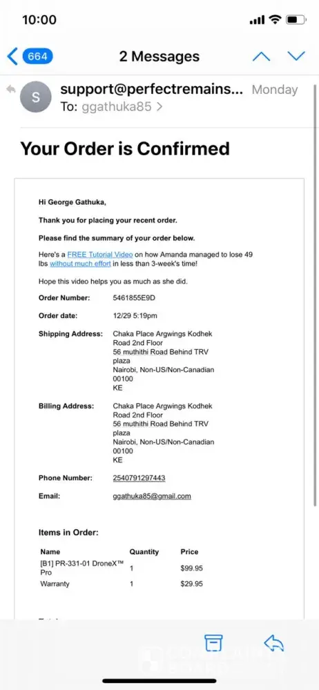 After that I have not received any further communication as to the status of my order neither have I received an email detailing how my package is to be delivered, On closer research, I discover that this company is a scam and I could have fallen prey to the same scam
