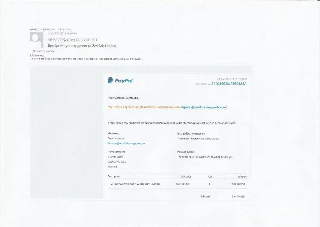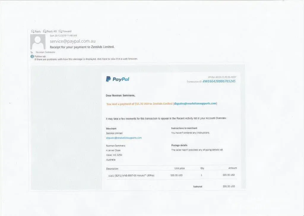 where 3 of these were ordered totalling $72.90 USD and were to be shipped to Wodonga.