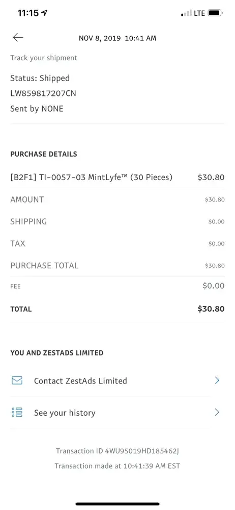 Same exact scam for me. PayPal has denied my Dispute because ZestAds provided a fraudulent Proof of Delivery.