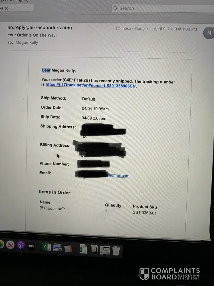 I have been in touch with them to inform them that I will be travelling and need to receive those items. they gave me a tracking number that is wrong and cannot track. I have a feeling this company is not genuine. they should be looked into seriously. i will be informing my attorneys of this if i do not receive the items this week.