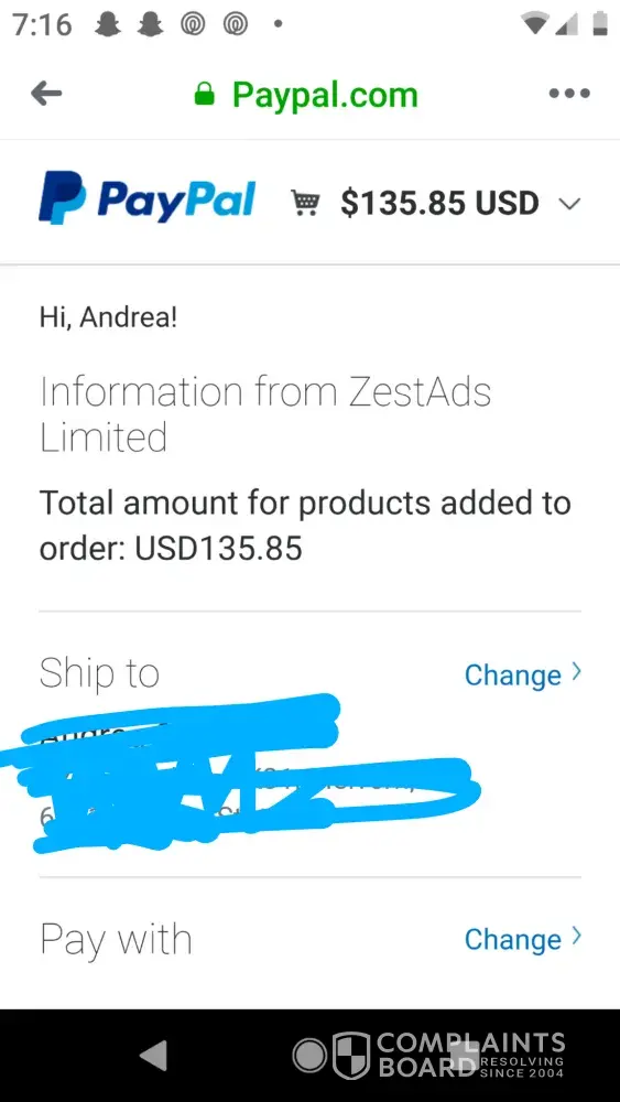 I ordered slimming patches on 28 th August and never received them. I started a dispute on PayPal. I paid £30.40 pence including warranty which do not know what that is about. I escalated with PayPal and unbelievably they ruled against me. I am out of pocket and have nothing to show for it. I feel really let down by PayPal. That is the reason I use PayPal I thought it was to protect the customer. They say it was delivered on 10 th of September. I had tried tracking but there was no information. Zest ad looks to me like they are scammers. I feel stupid for not checking them out. I will be more careful in future