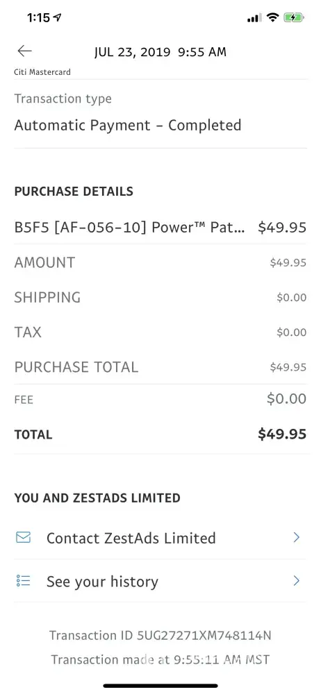 Mar 29, 2019 22:12:58 PDT Transaction ID: 8GT270104X247230R Merchant ZestAds Limited